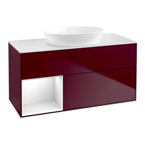 TTCV&B Meuble sous lavabo Finion 120 cm, blanc mat, tiroir blanc laqué, poignée métal