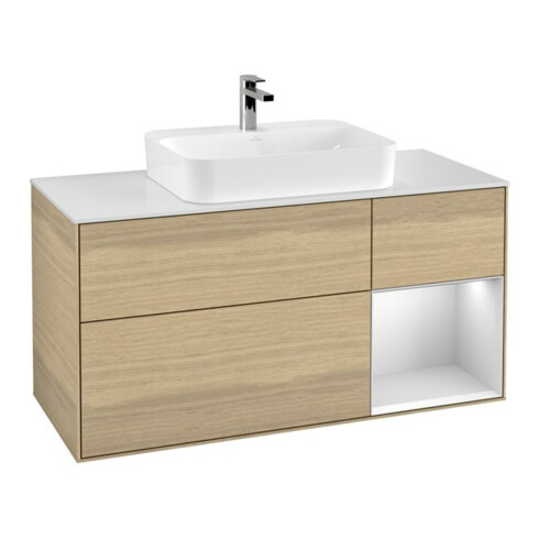 TTCV&B Meuble sous lavabo Finion 120 cm, blanc mat, tiroir droite blanc mat, poignée aluminium