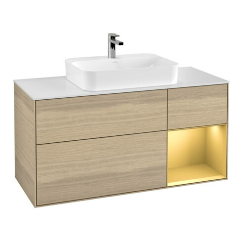 TTCV&B Meuble sous lavabo Finion 120 cm, blanc mat, tiroir droite, poignée ven