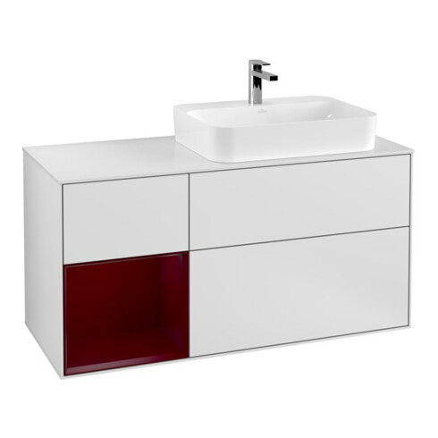 TTCV&B Meuble sous lavabo Finion 120 cm, blanc mat, tiroir gauche Peo, blanc mat laqué