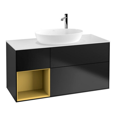 TTCV&B Meuble sous lavabo Finion 120 cm, blanc mat, tiroir or mat, bleu mat