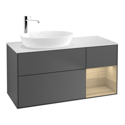 TTCV&B Meuble sous-lavabo Finion 120 cm, blanc mat, tiroir ouvert, anthracite mat