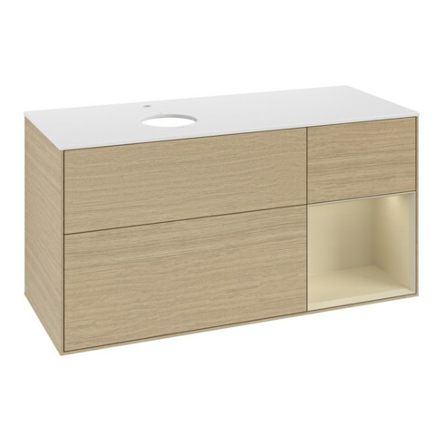 V&B Meuble sous-lavabo Finion 120 cm, blanc mat, tiroirs gris mat laqué, poignée ven