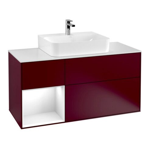 TTCV&B Meuble sous lavabo Finion 120 cm, éclairage mural, blanc brillant, gauche