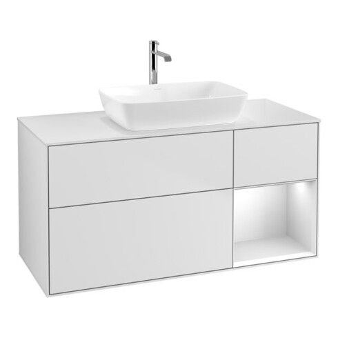 TTCV&B Meuble sous lavabo Finion 120 cm, éclairage mural, blanc mat, laqué blanc