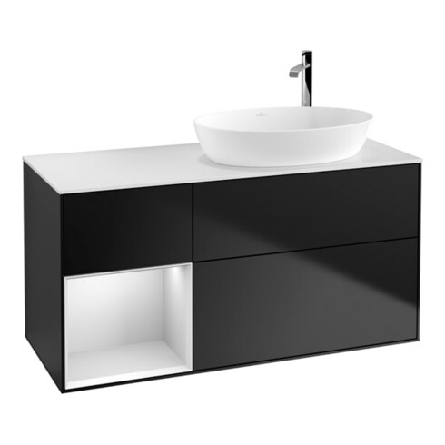 TTCV&B Meuble sous lavabo Finion 120 cm, éclairage mural, blanc mat, laqué blanc, bleu laqué