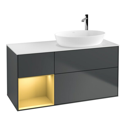 TTCV&B Meuble sous lavabo Finion 120 cm, éclairage mural, laqué blanc mat, laqué gris mat, avec miroir blanc mat