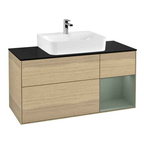 V&B Meuble sous-lavabo Finion 120 cm, éclairage mural, placage bois, laqué, olivier, finition satinée