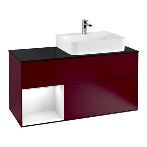 TTCV&B Meuble sous lavabo Finion 120 cm, Pl b m, Éclairage mural, gauche, blanc brillant, Lac, Peo m