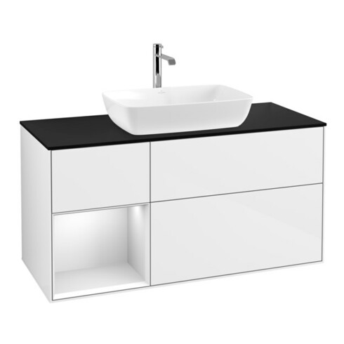 TTCV&B Meuble sous lavabo Finion 120 cm, Pl b m, Rg blc m Lac, blc brillant Lac