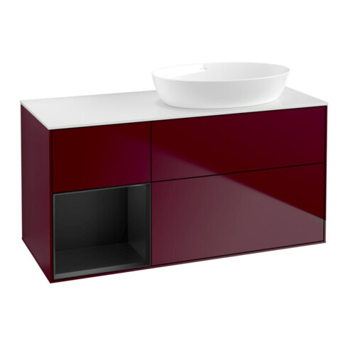 TTCV&B Meuble sous lavabo Finion 120 cm, pl blanc mat, rég bleu mat laqué, poignée m