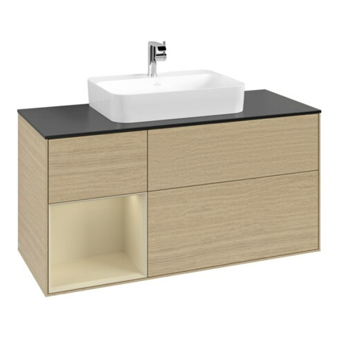 TTCV&B Meuble sous lavabo Finion 120 cm, Pl blanc mat, Rg gauche, si gris mat Lac, Oa ven