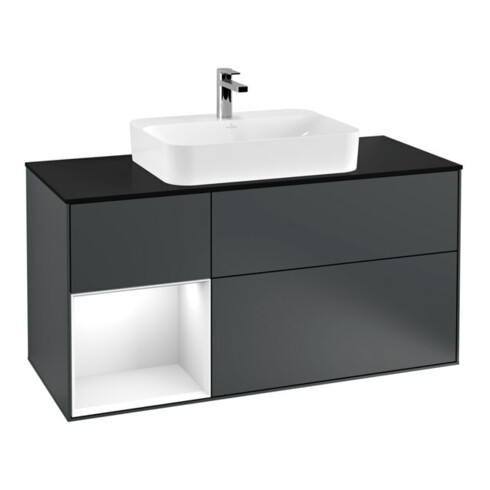 TTCV&B Meuble sous lavabo Finion 120 cm, Pl blanc mat, Rg laqué gris, avec bloc-miroir mat laqué bleu