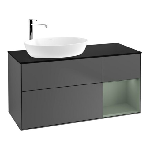 TTCV&B Meuble sous lavabo Finion 120 cm, Pl blanc mat, Rg olivier mat laqué, Anthracite m