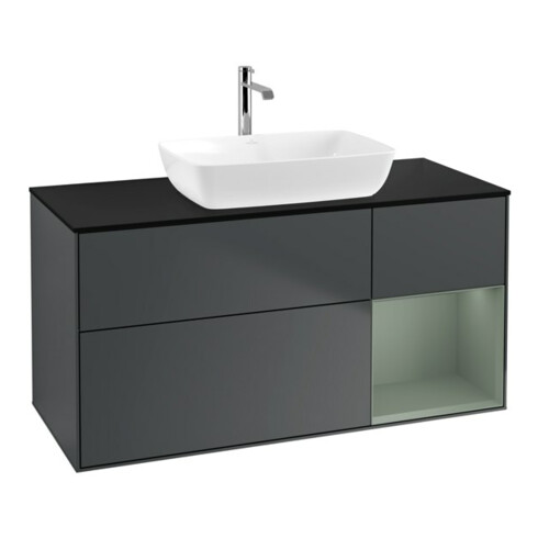 TTCV&B Meuble sous lavabo Finion 120 cm, Pl blanc mat, Rg olivier mat laqué, md bleu mat laqué