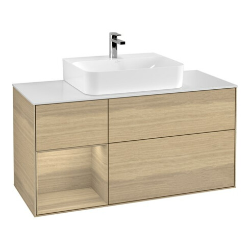 TTCV&B Meuble sous lavabo Finion 120 cm, pl blanc mat, tiroir gauche Oa ven, Oa ven