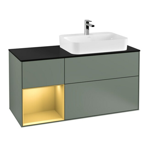 V&B Meuble sous lavabo Finion 120 cm, Pl blanc mat, Tiroir gauche, Olivine mat Lac