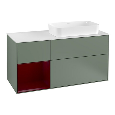 TTCV&B Meuble sous lavabo Finion 120 cm, pl blanc mat, tiroir gauche, poignée métal laqué