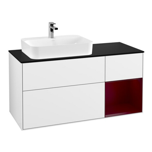 TTCV&B Meuble sous lavabo Finion 120 cm, Pl bleu, éclairage mural, réglette droite, blanc brillant Lac