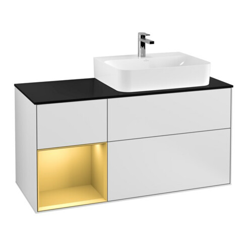TTCV&B Meuble sous lavabo Finion 120 cm, Pl bleu, étagère gauche, blanc, laqué