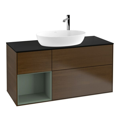 TTCV&B Meuble sous lavabo Finion 120 cm, Pl bleu m, Étagère Oli. m Lac, noyer ven