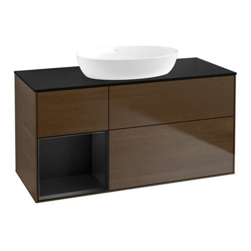 TTCV&B Meuble sous lavabo Finion 120 cm, Pl bleu m, Reg bleu m Lac, noyer veinée
