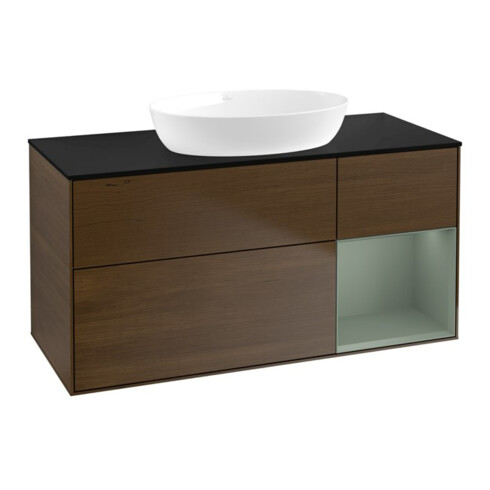 TTCV&B Meuble sous lavabo Finion 120 cm, Pl bleu m, Rég Oli. m Lac, noyer veiné