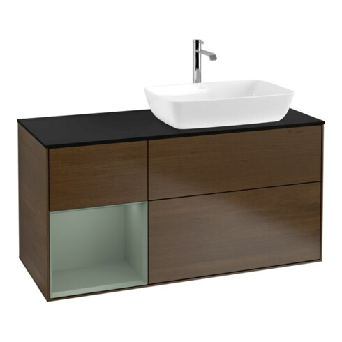 TTCV&B Meuble sous lavabo Finion 120 cm, Pl bleu mat, étagère huile m Lac, noyer vein