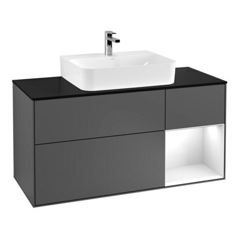 TTCV&B Meuble sous-lavabo Finion 120 cm, placage blanc mat, laque rouge/gris/blanc, anthracite m