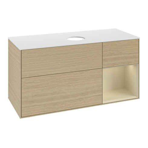 TTCV&B Meuble sous lavabo Finion 120 cm, placage blanc, tiroir gris mat laqué, ouverture ven