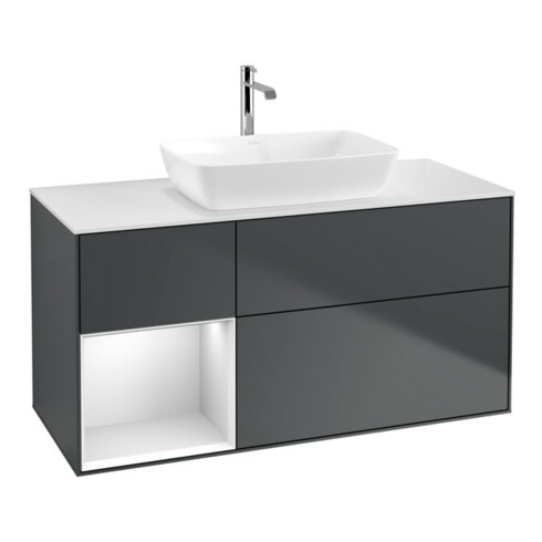 - Avec élément d'étagère éclairé et perçage pour robinet