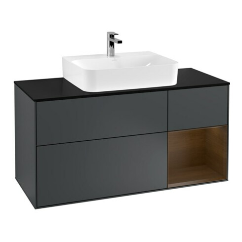 TTCV&B Meuble sous-lavabo Finion 120 cm, placage bois, chêne rouge, mat, laqué bois