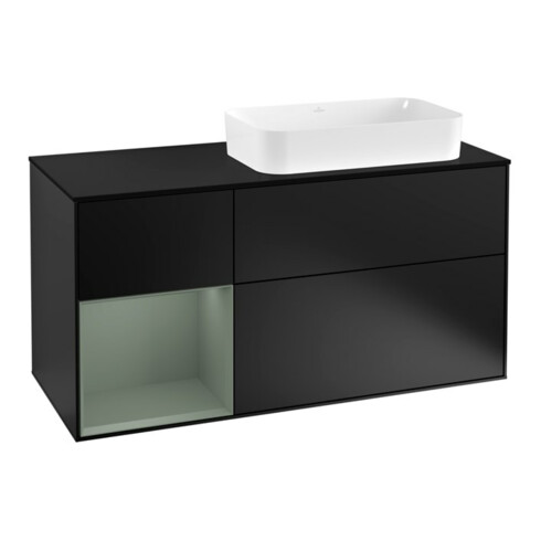 V&B Meuble sous lavabo Finion 120 cm, placage bois, laqué gris clair, bleu laqué