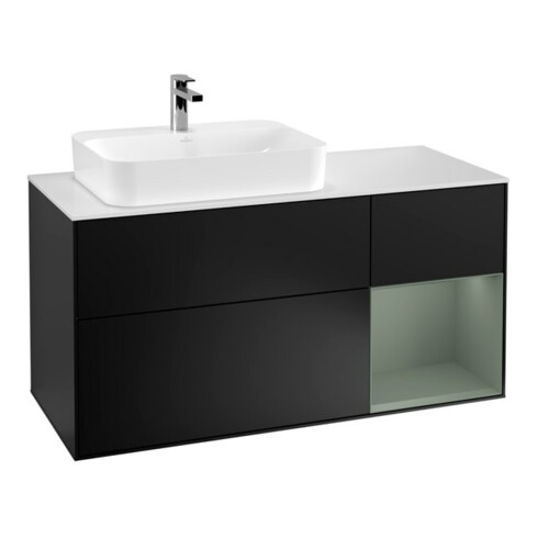 TTCV&B Meuble sous-lavabo Finion 120 cm, placage bois, laqué rouge, bleu laqué