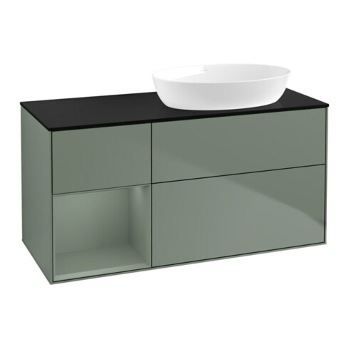 TTCV&B Meuble sous lavabo Finion 120 cm, placage bois m, laque olive m, laque olive m