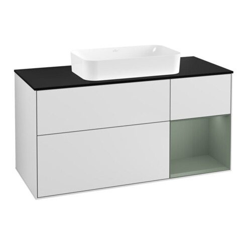 TTCV&B Meuble sous lavabo Finion 120 cm, placage bois m, laque rouge ol m, blanc m laque