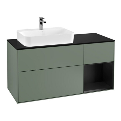 TTCV&B Meuble sous lavabo Finion 120 cm, placage bois, rouge bordeaux mat laqué, olivier mat laqué