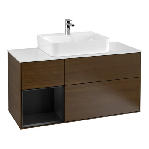 TTCV&B Meuble sous lavabo Finion 120 cm, placage bois, tiroir gauche, bleu mat, noyer veinée
