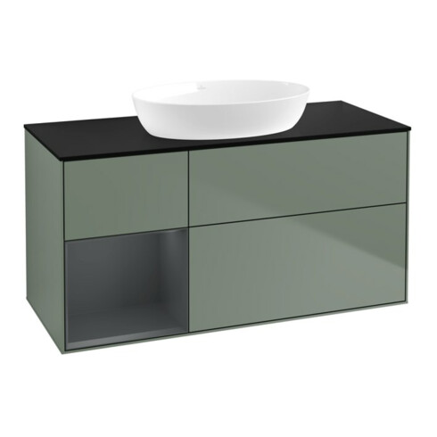 TTCV&B Meuble sous lavabo Finion 120 cm, placage bouleau, rangement médium laqué, olivier laqué