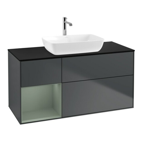 TTCV&B Meuble sous lavabo Finion 120 cm, placage bouleau, rangement ouvert mat laqué, mat bleu mat laqué
