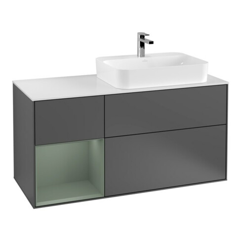 TTCV&B Meuble sous lavabo Finion 120 cm, placage noyer, laqué anthracite mat