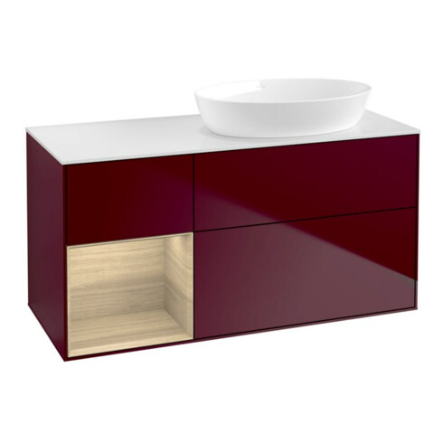 TTCV&B Meuble sous lavabo Finion 120 cm, plan de toilette blanc, avec rangement Oa ven, Peo m