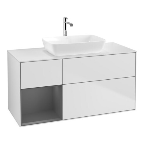 TTCV&B Meuble sous lavabo Finion 120 cm, Plaqué blanc mat, Rangée A mat laqué blanc