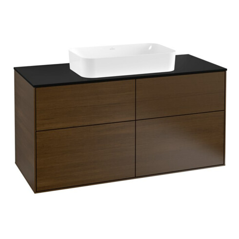 TTCV&B Meuble sous lavabo Finion 120x60,3cm, placage noyer, éclairage mural bleu