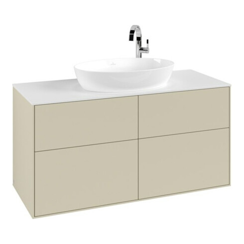 TTCV&B Meuble sous lavabo Finion 120x60,3cm, plan de drainage blanc, poignée grise m Lac