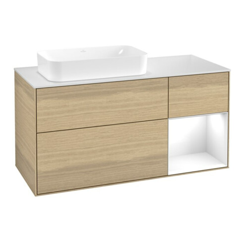 TTCV&B Meuble sous lavabo Finion 120x60 cm, éclairage mural, blanc laqué, placage Oa
