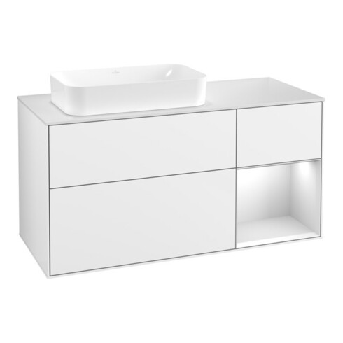 TTCV&B Meuble sous lavabo Finion 120x60 cm, éclairage mural, blanc mat laqué, blanc brillant laqué