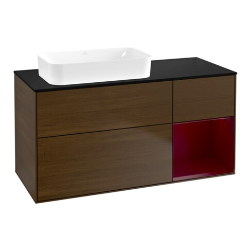 V&B Meuble sous lavabo Finion 120x60 cm, éclairage mural, placage noyer, Peony à droite