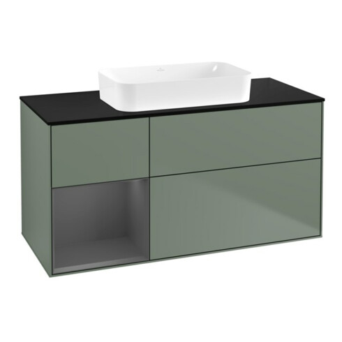 V&B Meuble sous lavabo Finion 120x60 cm, étagère gauche Anthracite m, huile m laque