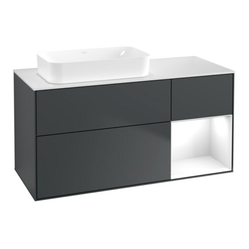 TTCV&B Meuble sous lavabo Finion 120x60 cm, laqué blanc, médium bleu mat